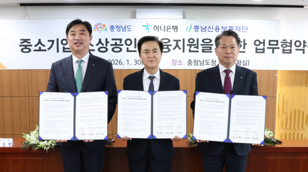 [충청뉴스 박영환 기자] 충남도가 어려움을 겪고 있는 도내 중소기업과 소상공인을 위해 하나은행·충남신용보증재단과 함께 825억원 규모의의 대출을 지원한다고 30일 밝혔다.