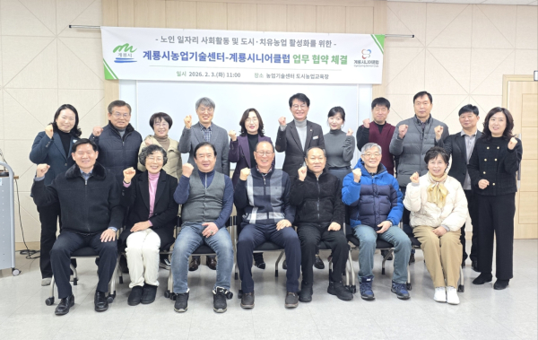 [충청뉴스 계룡 = 조홍기 기자] 충남 계룡시는 3일 농업기술센터와 계룡시니어클럽(관장 유인화)이 노인 일자리 및 도시․치유농업 활성화를 위한 업무협약을 체결했다고 밝혔다.