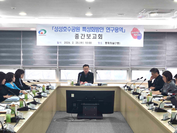 윤석훈 농업환경국장은 “중간보고회에서 나온 의견을 반영해 향후 성성호수공원의 5개년 발전계획과 특성화방안이 수립될 수 있도록 용역 추진에 최선을 다할 것”이라고 말했다.