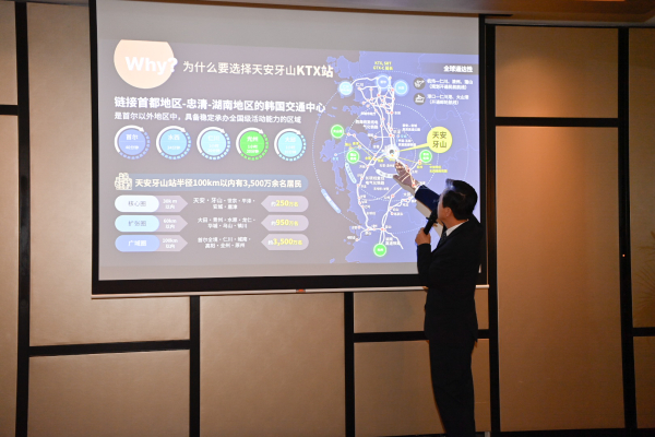 이어 “케이티엑스(KTX) 천안아산역과 광역복합환승센터를 중심으로 전국 접근성이 뛰어나며, 인천·청주공항, 항만 기반시설(인프라)과 연계해 해외 수요까지 흡수할 수 있다”고 강조했다.