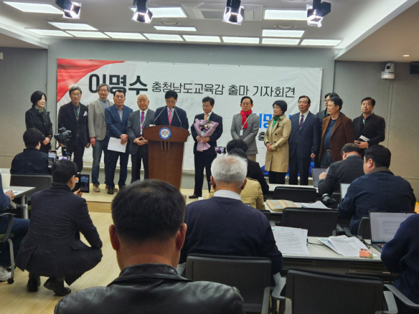 [충청뉴스 유규상 기자] 4선 국회의원 출신이자 육군3사관학교 교수와 2차례의 지역 대학 부총장을 역임한 이명수 전 오송첨단의료산업진흥재단 이사장이 16일 충남도청 기자실에서 기자회견을 갖고 공식 출마를 선언했다.