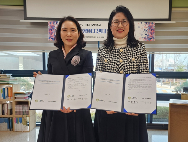 세종늘벗학교(학교장 박옥남)는 16일 교내에서 나다움 사회적협동조합(이사장 송미령)과 ‘세종늘벗학교 가정형 Wee센터’ 운영을 위한 민간위탁 업무협약을 체결하고, 학업 중단 위기에 처한 학생들을 보호하기 위한 긴밀한 협력 체계를 구축했다.