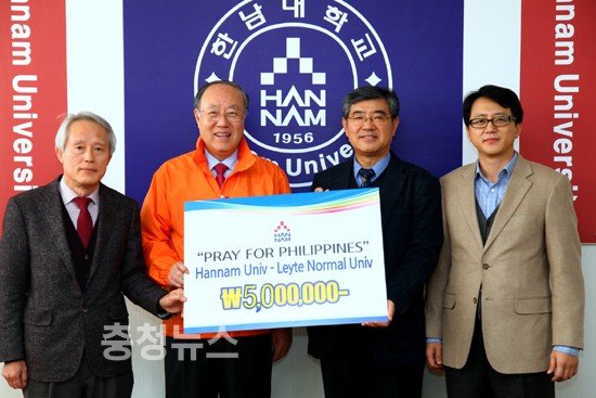 한남대가 태풍 하이옌으로 막대한 피해를 입은 필리핀을 위해 학생과 교직원 모금운동을 펼쳐 구호성금 1천만원을 전달했다.