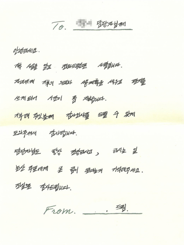 논산시 이웃돕기성금 담당자 앞으로 도착한 감동의 편지