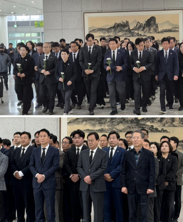 더불어민주당·국민의힘·조국혁신당 대전시당은 22일 대전시청에 마련된 합동분향소를 찾아 희생자에 대한 깊은 애도를 표했다. 실종자 구조와 유가족 지원에 총력을 기울여야 한다고 강조했다.
