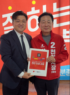 [충청뉴스 유규상 기자] 국민의힘 권용태 천안시장 예비후보가 23일 공천 결과를 겸허히 수용하며, 시민들과 SNS(스레드)로 소통하며 설계한 7대 민생과제를 박찬우 후보에게 전달하는 원팀 행보에 나섰다.