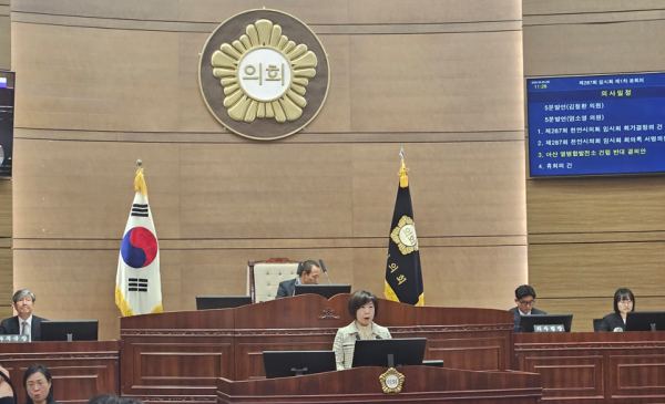 [충청뉴스 유규상 기자] 천안시의회는 23일 제287회 임시회 1차 본회의에서 김길자 의원(쌍용1·2·3동)이 대표 발의한 「아산 열병합발전소 건립 반대 결의안」을 만장일치로 채택했다.