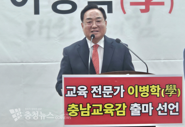 [충청뉴스 박영환 기자] 이병학 충남교육감 예비후보는 24일 "충남교육의 기본을 바로 세우고 무너진 교실을 다시 일으키겠다"며 충남교육감 선거 출마를 공식화했다.