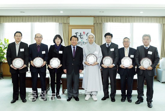 대전시는 19일 오후 대전시청 사랑방에서 염홍철 대전광역시장, 대전복지재단 정진철 대표와 복지만두레 활성화 유공 기업, 기관단체(별첨) 참석한 가운데 감사패 전달식을 가졌다.
