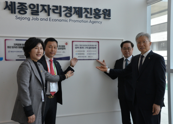 또한 이번 행사의 의미를 항구적으로 기념하기 위한 특별한 순서가 마련됐다. 협약을 체결한 4개 기관장(세종시, 세종여성기업인협의회, 세종상공회의소, 세종일자리경제진흥원)과 월드옥타 관계자들은 행사장 뒤편 현판 식장으로 이동해 ‘글로벌 협력 체계 구축 기념 현판식’을 가졌다.
