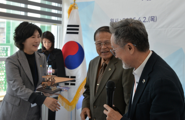 왼쪽으로 부터 이연재 회장, 홍해 회장, 김진동 회장, 이홍준 원장