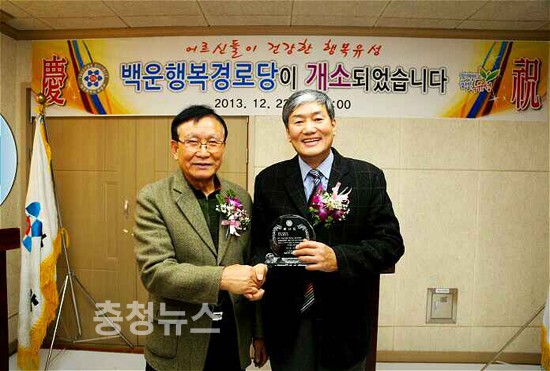 대전시의회 한근수 의원(산업건설위원장, 유성4, 새누리당)이 23일 유성구 봉산동 주민들로부터 감사패를 받았다. 한 의원은 지역주민들의 오랜 숙원사업이었던 백운행복경로당 건립 사업을 적극적으로 지원해 노인들의 쉼터를 제공함으로써 정서함양이나 상부상조의 정신을 기릴 수 있도록 했고, 건강한 여가 생활과 삶의 질을 제고시키는데 이바지한 공로를 인정받아 감사패를 받았다. 저작권자 © 충청뉴스 무단전재 및 재배포 금지 최온유 기자 다른기사 보기 기사가 마음에 드셨나요? 충청뉴스 좋은 기사 후원하기 1,000원 3,000원 5,000원 10,000원 30,000원 50,000원 직접입력 비회원 약관동의하기 ※ 소중한 후원금은 더 좋은 기사를 만드는데 쓰겠습니다.
