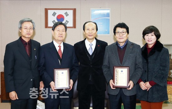 대전시교육청(교육감 김신호)은 26일 오전 교육감실에서 2013년 한해 동안 HAPPY스쿨! 대전교육사랑운동에 동참해 장학금을 기탁해 우수인재 육성에 기여한 공이 큰 ㈜영남강철 최성대 대표, ㈜유풍잉크 김용각 (전)대표에게 감사패를 수여하고 고마움을 표했다.