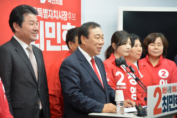 한편 최민호 후보의 출마 선언장에는 이준배 국민의힘 시당위원장을 비롯해 정우진 세종갑 당협위원장,김광운·김동빈·김충식·윤지성·최원석·홍나영·이미경·송동섭·정영원·박윤경·서용숙·양진호·한민정·곽효정 출마 예정자들이 자리를 함께 했다.