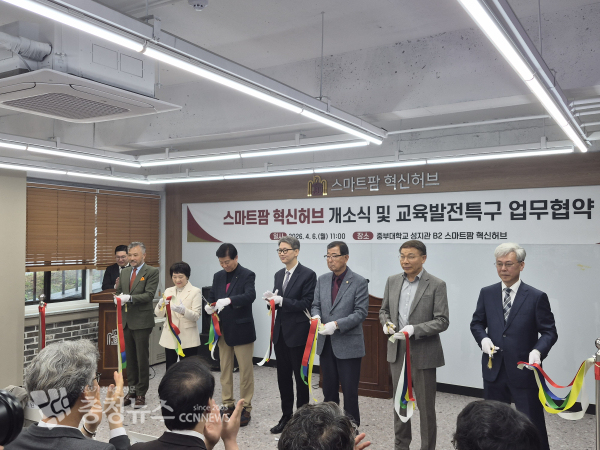 [충청뉴스 금산 = 조홍기 기자] 중부대학교(총장 이정열)는 6일 충청국제캠퍼스에서 ‘스마트팜 혁신허브 개소식’을 개최하고, ICT 기반 첨단 농업 교육과 연구, 지역 연계형 실증을 결합한 스마트농업 혁신 거점 구축에 본격 나섰다.