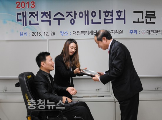 척수장애인 권인옹호와 복지증진에 기여 공로 대전 동구의회 김종성 의장은 26일 사단법인 대전광역시 척수장애인협회로부터 공로패를 받았다. 이날 김종성 의장의 척수장애인협회 공로패 수상은 척수장애인의 권인옹호와 복지증진에 크게 기여한 공로를 인정받아 이뤄졌다. 저작권자 © 충청뉴스 무단전재 및 재배포 금지 최온유 기자 다른기사 보기 기사가 마음에 드셨나요? 충청뉴스 좋은 기사 후원하기 1,000원 3,000원 5,000원 10,000원 30,000원 50,000원 직접입력 비회원 약관동의하기 ※ 소중한 후원금은 더 좋은 기사를 만드는데 쓰겠습니다.