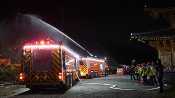 이번 훈련은 가상의 대형 산불이 야간에 발생해 민가로 확산하는 위박한 상황을 가정해 진행되었다.