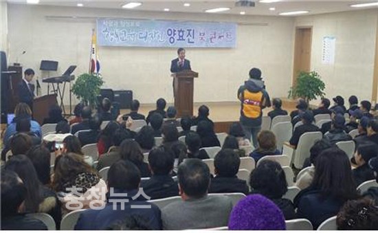 양효진 前 당진교육장은 지난 16일 오후 논산중앙초등학교 새솔빛방에서 논산·계룡지역의 학부모, 사회단체 인사, 전직 교육장, 교직원 등 200여명이 참석한 가운데 자신의 저서 ‘사랑과 정성으로 행복교육 디자인’ 북 콘서트를 성황리에 마쳤다.