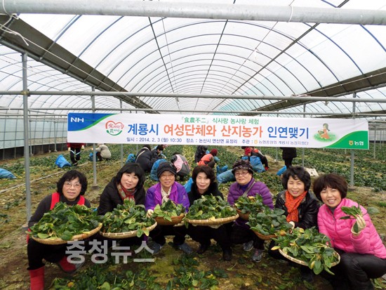 입춘절기를 맞아 농협중앙회 계룡시지부(지부장 김주명)는 3일 봄나물재배 농가를 찾아 대전시에 거주하는 주부들을 초청해 계룡시 여성단체회원들과 함께 봄나물채취 체험행사를 가졌다.