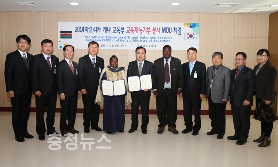 충남도교육청(교육감권한대행 부교육감 전찬환)은 6일 아프리카의 케냐 교육과학기술부와 글로벌 국제교류 MOU를 체결하고 교육재능기부 봉사 활동에 상호 지원 협조하기로 했다.
