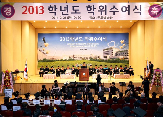 한밭대학교(총장 이원묵)는 21일 오전 10시30분 교내 문화예술관에서 총장과 내·외빈, 학부모와 졸업생 등이 참석한 가운데 2013학년도 전기 학위수여식을 거행했다.