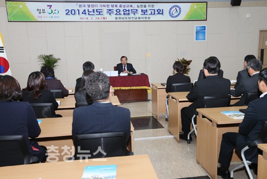 충남도교육청(교육감권한대행 부교육감 전찬환)은 2월 한 달간 12개 직속기관과 14개 지역교육청을 대상으로 소통과 공감을 바탕으로 꿈과 열정이 가득한 행복 충남교육 실현을 위한 ‘2014 주요업무계획 보고회 및 의견 수렴회’를 성황리에 마쳤다.