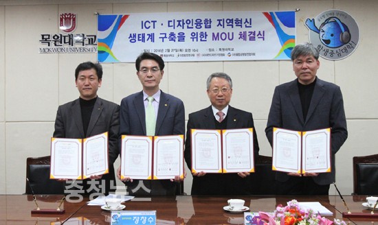 목원대(총장 김원배)는 27일 오전 본부 회의실에서 김원배 목원대 총장, 장창수 대전발전연구원 원장 직무대행, 이용훈 (사)대전디자인기업협회 회장, 홍춘강 (사)융합금형발전협의회 이사장 등 대표자와 관계자 20여명 참석한 가운데 'ICT·디자인융합 지역혁신 생태계 구축을 위한 MOU' 협약을 체결했다.