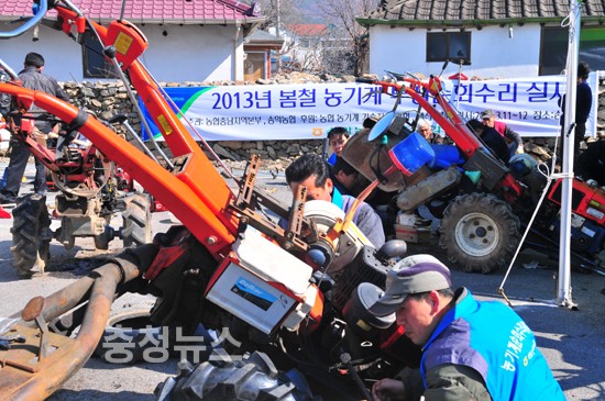 농협중앙회 충남지역본부(본부장 김병문·이하 충남농협)은 본격적인 영농철을 앞두고 농기계센터가 없어 농기계수리 등 영농준비에 어려움을 겪고 있는 농업인들을 위해 13~14일 이틀간 아산 송악농협 주차장에서 농기계순회수리 봉사활동을 실시한다.