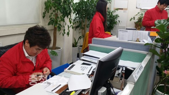 ▲ 새누리당 대전시당 지선후보자 공천접수 현황을 집계하고 있는 박두용 조직부장