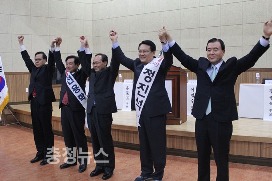 ▲ 이명수, 전용학 후보 성완종 도당위원장, 정진석, 홍문표 후보