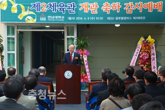 이어서 글로벌캠퍼스 제2체육관 개관 축하 행사가 열렸다. 옛 대전국제학교 부지인 한남대 글로벌캠퍼스 내에 위치한 제2체육관은 배구, 농구, 배드민턴 등을 할 수 있는 종합체육공간과 헬스장, 탁구장, 세미나실 등의 다양한 시설을 갖추고 있다.