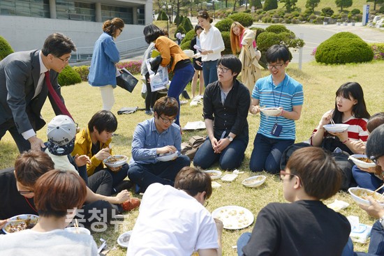 김 총장은 이날 블랙데이인 점을 감안해 교내 잔디밭인 ‘킴스가든’에서 자장면 300그릇을 학생들과 함께 나눠 먹는 이벤트를 마련했다.