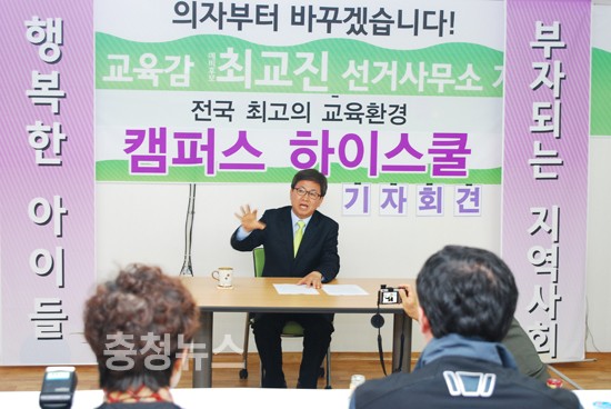 최교진 후보는 이날 선거사무소에서 기자회견을 갖고 세계적인 공교육 모델도시를 구축하기 위한 대안으로 '캠퍼스형 고등학교 설립' 방안을 발표했다.