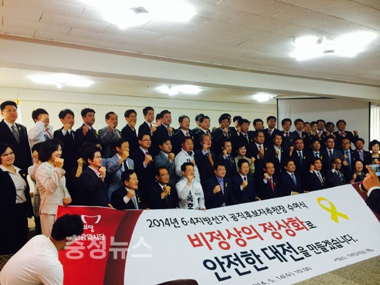 후보자 대표로 나선 박성효 대전시장 후보는 “새누리당 광역단체장 후보의 경력을 보면, 7선 국회의원, 장관, 당대표 출신 등 거물급들이 출마하며, 이는 새누리당이 지방정치를 존중하는 의미로 볼 수 있다. 또, 이완구 원내대표는 충청권 출신으로 당내에서 충청권의 중요성을 어느 때 보다도 중요하게 생각한다”면서 “충청민심은 대한민국 민심이라는 생각으로 대전지역 후보자들과 국민을 위해 노력하겠다”고 다짐했다.