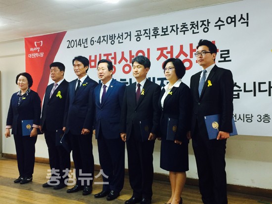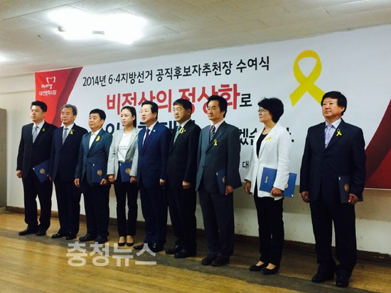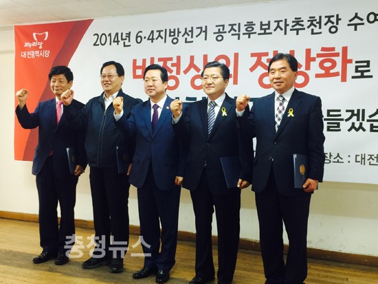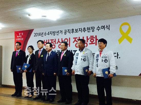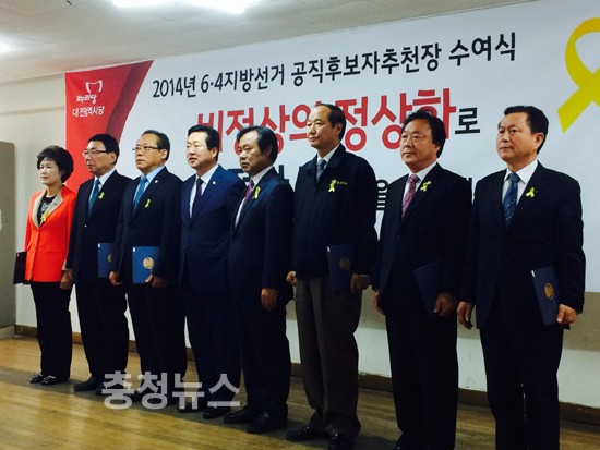 새누리당 대전광역시당(위원장 이장우)은 14일 6·4지방선거 후보자들 공천장 수여식을 개최했다.