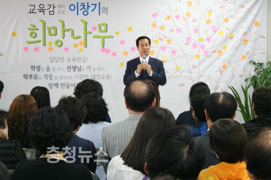 전 대전일보 사장 이지영 고문은 "부정부패 이대로는 안되며 교육이이대로 가다간 나라가 망한다. 교육을 바로 잡을 후보는 이 후보 뿐"이라면서 선거 승리를 위해 열심히 뛰어 줄 것을 당부했다.