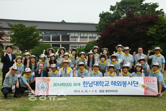 한남대(총장 김형태) 학생들이 25일 ‘2014년 하계 해외봉사활동’을 위해 몽골로 떠났다. 한남대 학생 26명과 학교관계자 2명 등 총 28명으로 구성된 ‘2014년 한남대 하계 해외봉사단’은 6월 25일부터 7월 6일까지 11박 12일 동안 몽골 울란바토르에서 봉사활동을 펼친다.
