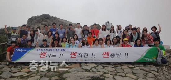 이들은 이날 무주로 이동 덕유산 향적봉 정상에 올라 힘찬 출발을 다짐하며 카드사업 재도약을 위한 ▲신규회원 1만4천명 ▲이용활성화 1만명 ▲체크카드 회원 8천명 ▶기업카드 이용액 2,400억원 을 하반기 추진목표로 세우고 총력을 기울일 것을 결의했다.
