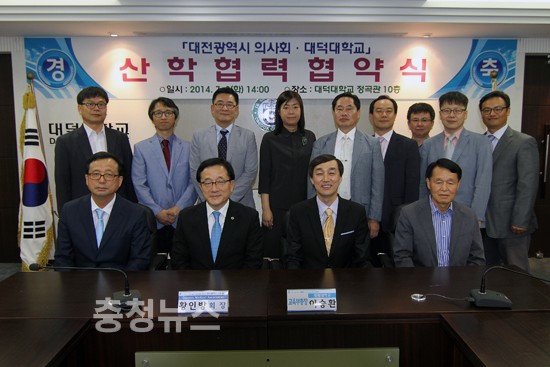 대덕대학교(총장 홍성표)는 대전광역시 의사회(회장 황인방)와의 산학협력 및 교류를 통하여 관련 전문직업인 육성을 위한 상호협력을 약속하고자 2014년 7월 8일 오후 2시 대덕대학교 정곡관 10층 대회의실에서 협약식을 체결하였다.