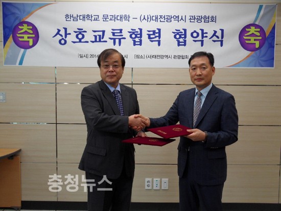 한남대 문과대학(학장 이규식)은 지난 17일 (사)대전관광협회(회장 이일행)와 대전관광협회 회의실에서 산·학 교류협약을 체결했다고 밝혔다.