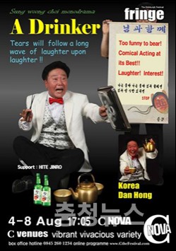 ‘술꾼’은 8월 4일부터 8일까지 에든버러 ‘시 노바(C nova)’ 공연장에서 하루 1회씩 총 5회 공연된다. 모노드라마의 주인공인 술꾼 역은 한국연극배우협회 최성웅 이사장이 특별출연하며, 연출자는 유승희 대표이다.