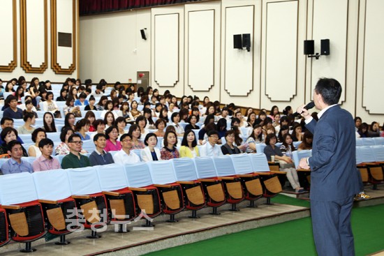 여름 방학을 이용하여 상위 자격을 취득하기 위한 1급 정교사 교사와 전문성 신장을 위한 연찬의 기회를 갖고자 연수 참여한 교사들은 대전교육연수원의 창조관을 꽉 채운 채 진지한 자세로 교육감의 특강을 경청했다.