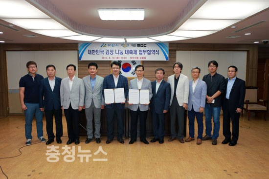 아산시(시장 복기왕)는 12일 시청 상황실에서 국내 최대 사회공헌 프로젝트인 대한민국 김장나눔 대축제에 아산시에서 생산되는 배추와 고추, 마늘 등 로컬푸드를 공급한다는 내용의 업무협약을 대전MBC와 체결했다.