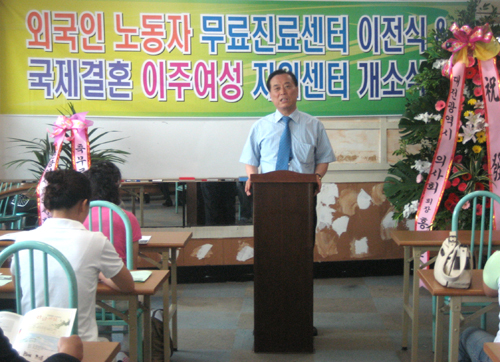 무료진료센터 이전식’ 및 ‘국제결혼 이주여성 지원센터 개소식’을 축하하고 외국인 이주자들에 대한 좀 더 많은 관심과 사랑을 호소했다.
