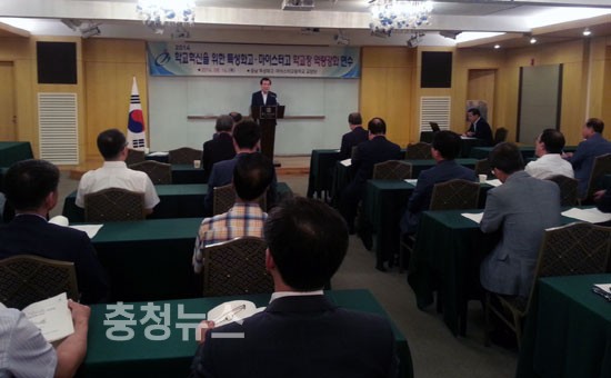 충남도교육청(교육감 김지철)은 14일 충남 특성화고 학교혁신을 위한 특성화고·마이스터고 학교장 연수를 예산군 덕산에 소재한 리솜스파캐슬에서 특성화고․마이스터고 교장 42명이 참석한 가운데 실시했다.