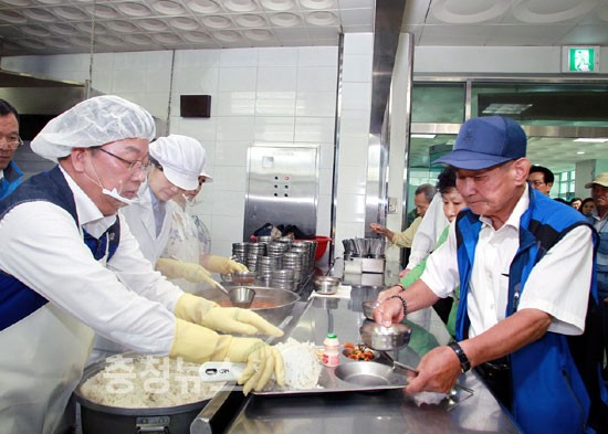 권선택 대전시장은 26일 중구 대흥동 시 노인복지관 경로식당을 찾아 저소득층 어르신들에게 급식봉사 활동을 했다.