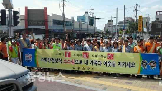 이번 행사에는 공주소방서, 의용소방대, 자율방재단, 안전생활실천시민연합 등 80여명이 합동으로 안전점검의 날 캠페인을 실시했다.