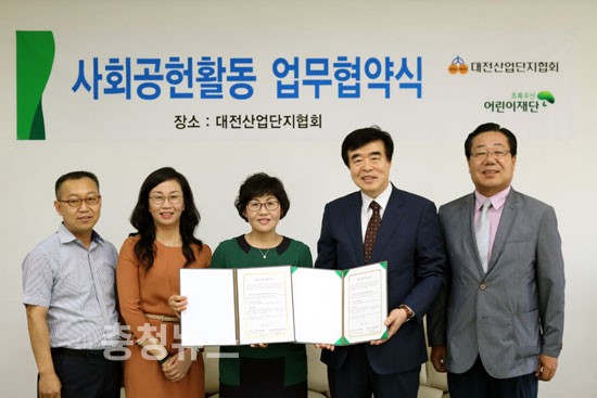 대전산업단지협회(회장 김종민)와 초록우산 어린이재단은 22일 대덕구 대화동에 위치한 대전산업단지협회 회장실에서 나눔문화 조성과 어려운 이웃들의 복지증진을 위한 사회공헌활동 협약을 체결했다.