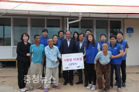 ‘사랑방’은 삼성전자 온양캠퍼스에서 2005년 10월부터 매년 3~5가구의 주거환경이 취약한 저소득층을 선정, 가구당 1,300여만 원을 들여 주거환경을 개선하는 사업이다.