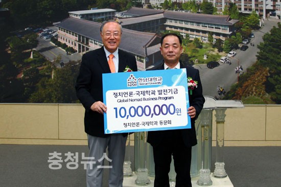 한남대는 정치언론·국제학과가 학과 설립 30주년을 기념하는 행사에서 학과 발전기금 2천5백만원을 전달했다고 밝혔다.